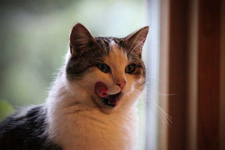 Muska-kissa lipoo suupieliään nähdessään joulunkinkun