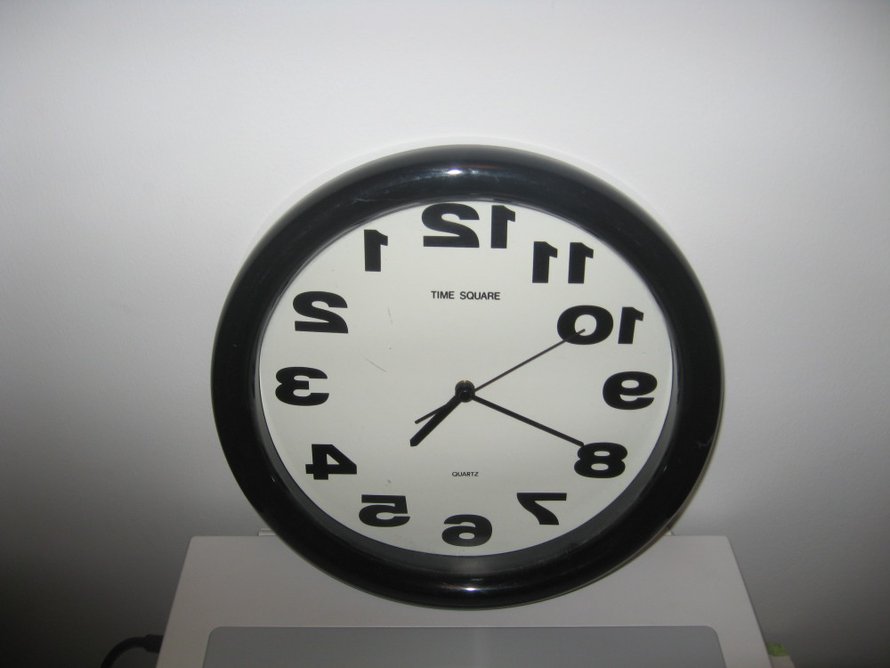 Kello saatu lahjaksi 80-luvulla. Kellon ajannäyttö on päinvastoin, mutta sitä oppii lukemaan helposti.