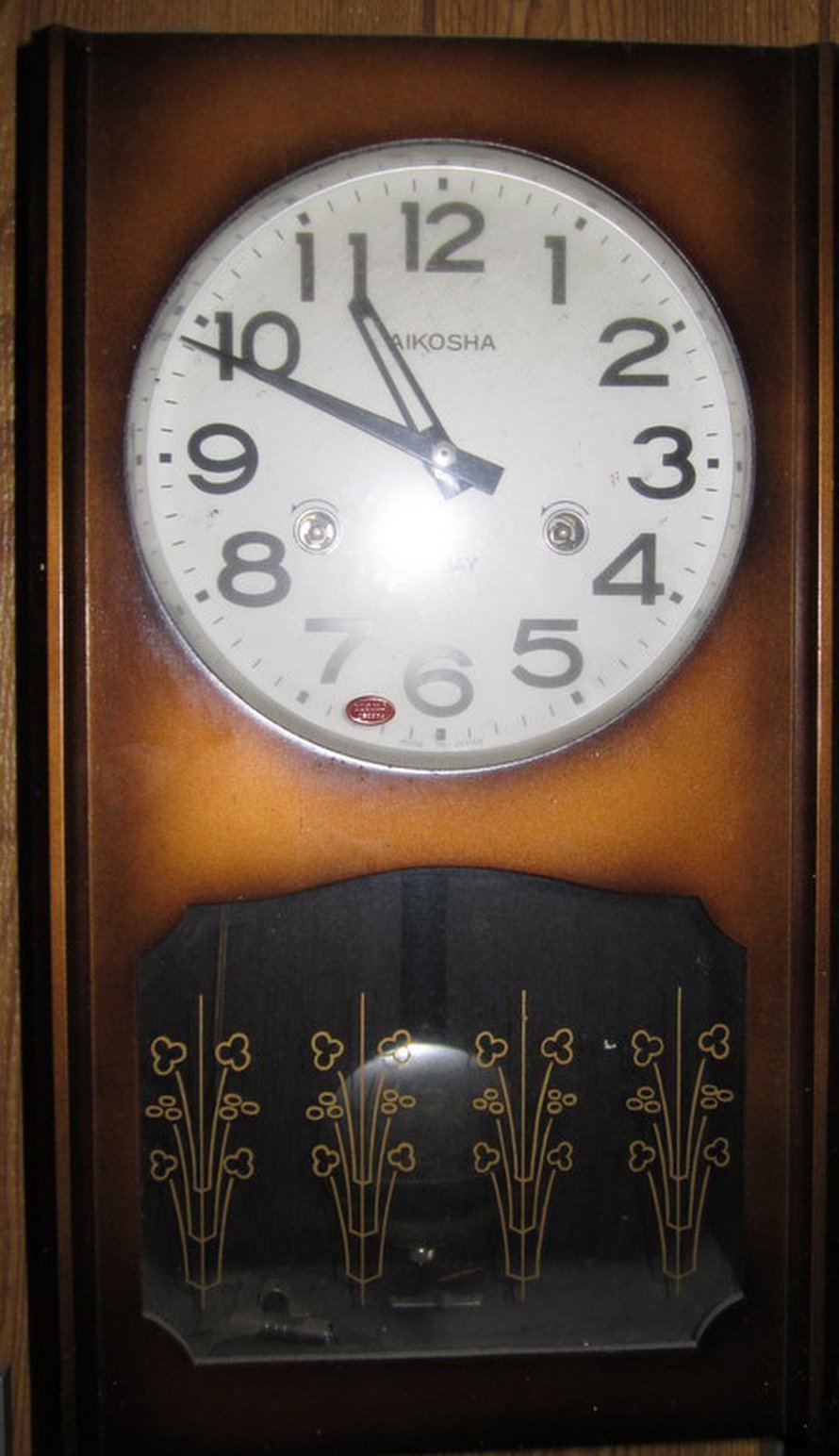 Kihlajaislahja vuodelta -78. Kello pysähtyi, kun muutimme nykyiseen taloomme -90 ja on vieläkin pysähtyneenä. Kello löi tasatunnein niin monta kertaa, kuin paljonko kello oli ja aina puolelta kerran. Jokohan saisi aikaiseksi korjauttaa, kun aikaakaan ei ole juurikaan vierähtänyt.. Onneksi kello on sentään kaksi kertaa päivässä oikeassa ajassa.. :)