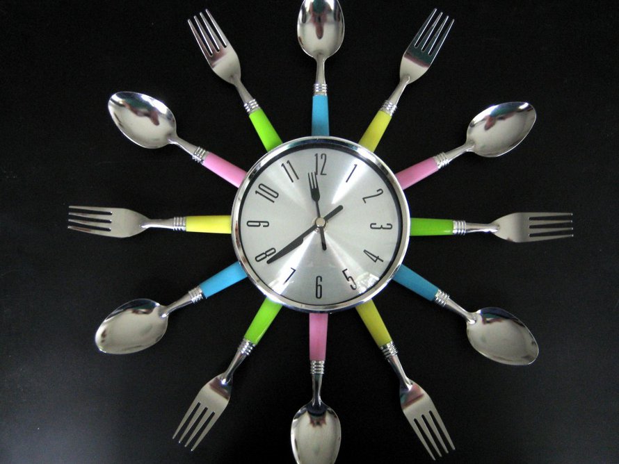 Tämä kello kuuluu viisareita myöten keittiöön.