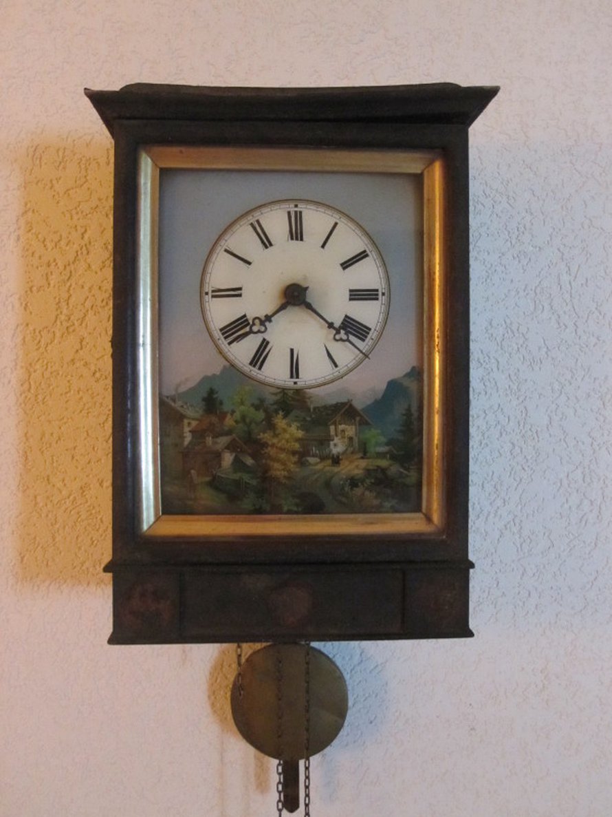 Uusin, mutta samalla myös vanhin kellomme löytyi rikkinäisenä kirpparilta. Nyt kello jo käy, mutta aivan omaa aikaansa. Punnukset puuttuvat vielä, samoin soittokello ja takakansi, mutta kuntoon aiomme kellovanhuksen vielä laittaa. Väliaikaista punnuksen virkaa hoitavat paistinpannu, kiintoavainsarja sekä metrimitta. Muuten kello on aivan ihastuttava ja erikoinen. Tomeran käyntiäänensä takia se on nimetty Tikkitakiksi.