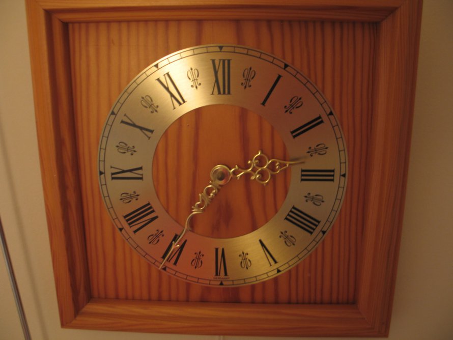 Puuhehyksinen kello, joka on toiminut uskollisesti yli kymmenen vuotta.