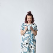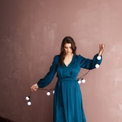 Yksinkertainen ja kaunis mekko, jossa v-pääntie.