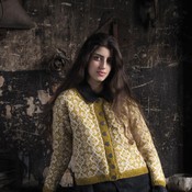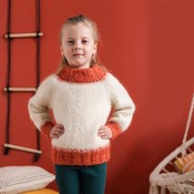 Kaksinkertaisella langalla neulottu lapsen pusero.