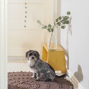 Pitsillä kevennetty, pieni ja pyöreä matto.