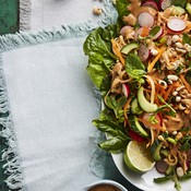 Reseptit 13.4.2023 Vegaaninen nuudelisalaatti koukuttaa - salaisuus on makoisa maapähkinäkastike Vegaaninen nuudelisalaatti on yhtä aikaa raikkaan rapea, mukavan pehmeä, sopivan suolainen ja pähkinäisen makea...