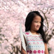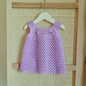 Ylhäältä alas neulottu kesäinen neulemekko.