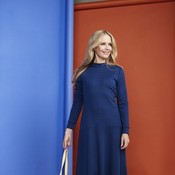 Leveähelmainen, puolisääreen ulottuva villamekko.
