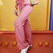 Korkeavyötäröiset, pitkälahkeiset collegehousut.