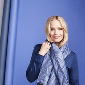 Toppakankaasta ommeltu suorakaiteen muotoinen huivi.