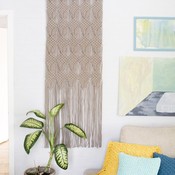 Makrameetekniikalla solmittu Tähkä-seinävaate.