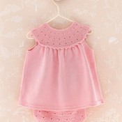 16.6.2025 Mekko & housut Klassinen, takaa napitettava mekko ja söpöt puuvillalangasta neulotut pikkupöksyt vauvalle. Koko 9/12 kk.