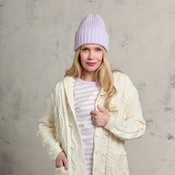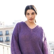 Superpaksuilla puikolla neulottu Laventeli-pusero.