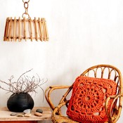 Amppeli nahkanarusta ja puuhelmistä.