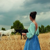 Pusero, jossa yhdistyy pitsi- ja palmikkoneule.