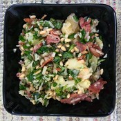 Reseptit 27.5.2020 Pestoperunasalaatti Ronskeiksi paloiksi jätetyt perunat, juuri paahdettu pekoni ja pestosta tutut maut ovat vastustamattomia yhdessä.