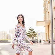 Olkapäät paljastava kesämekko.