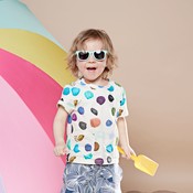 T-paita , jossa edessä hiuslaskokset.
