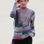 Kahdesta osasta koottu neulepusero.