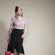 Kapea, pitkä hame sivuhalkioilla.
