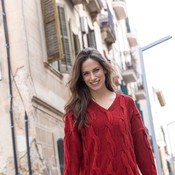 Rento ja väljä kirjoneulepusero.