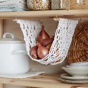 Näppärä ja nopeasti solmittava riippukori, koko 35 x 20 cm.