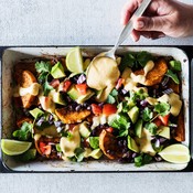 Reseptit 7.9.2018 Bataatti-cheddar-pelti Mustapavut ja rapeat bataattilohkot tekevät texmex-vuoasta ihanan täyttävän. Tuoreet tomaatit tuovat raikkautta.