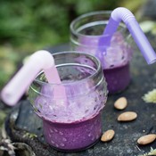 Reseptit 15.8.2018 Vegaaninen mustikka-mantelismoothie Lempeä smoothie ei kaipaa muuta makeutusta kuin ripauksen vaniljasokeria.