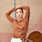 Laskoksilla ja rusetilla koristettu t-paita.