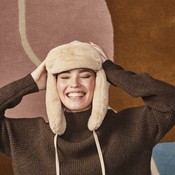 Korvaläpällinen ja lipallinen tekoturkislakki, päänympärys 56-60 cm.