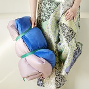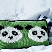 Tyynyssä Lumi ja Pyry-kirjonta.
