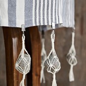 Pöytäliinan painot juuttinarusta ja kivistä.