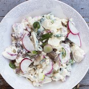 Reseptit 11.7.2018 Silli-kukkakaalisalaatti Lepytä silli kermaisella sitruunakastikkeella ja kokoa salaatti kukkakaalista, retiiseistä ja punasipulista.