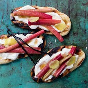Reseptit 22.6.2018 Raparperi-inkivääripitsat Grillaa pitsapohja rapeaksi ja täytä paistetulla raparperilla ja inkiväärillä sekä turkkilaisella jugurtilla.