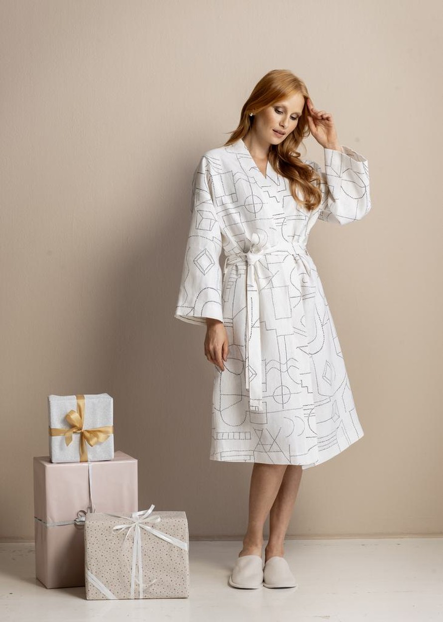 Suomalaisen designerkaksikon Saanan ja Ollin Onnenmaa-aamutakki.