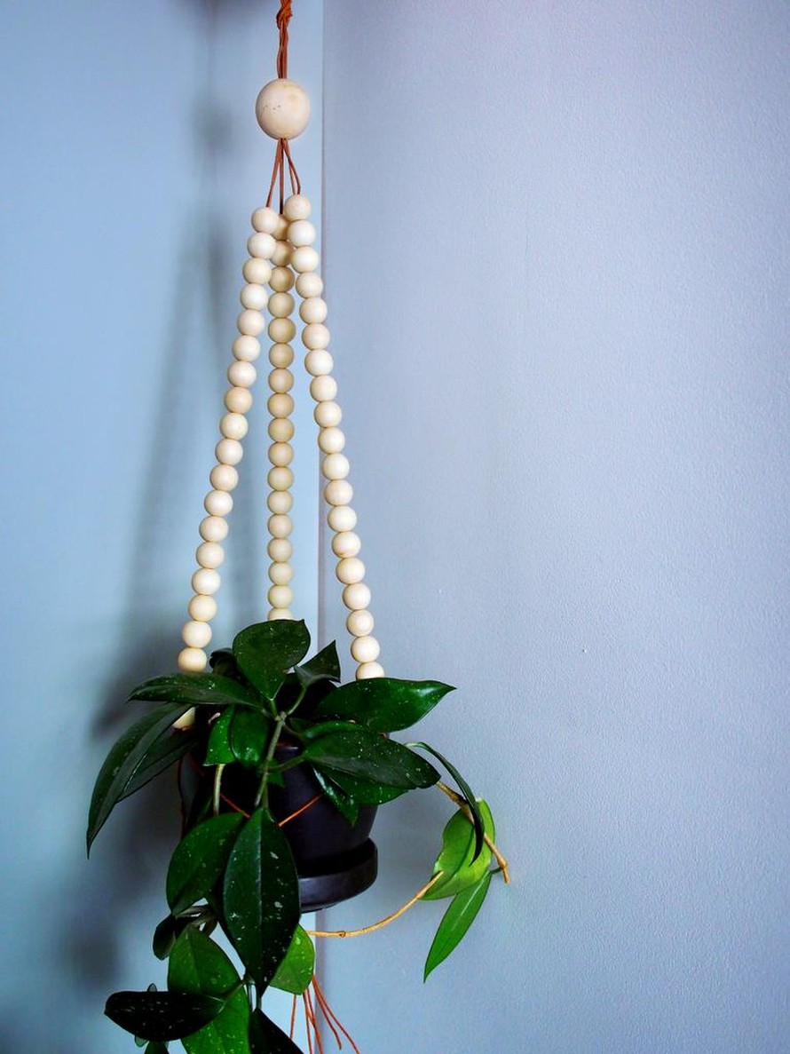 Amppeli nahkanarusta ja puuhelmistä.