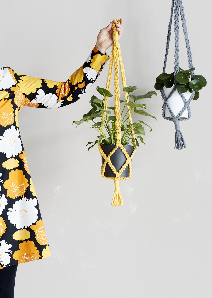 Makrameesolmittu amppeli.