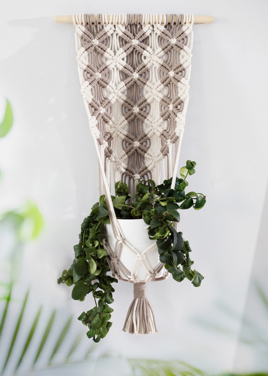 Makrameesolmittu amppeli.