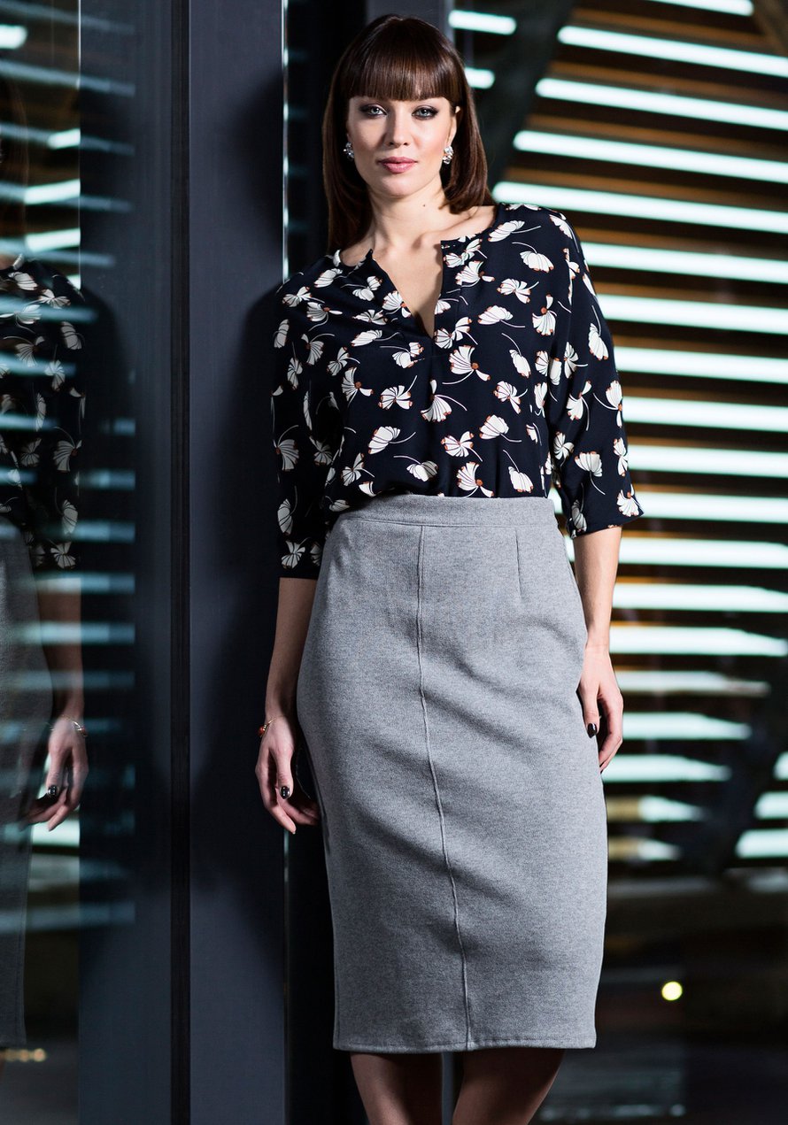 Suuri Käsityö 1/2017 s. 19Hame, jossa vyötäröllä muotolaskokset. Halkio takana.