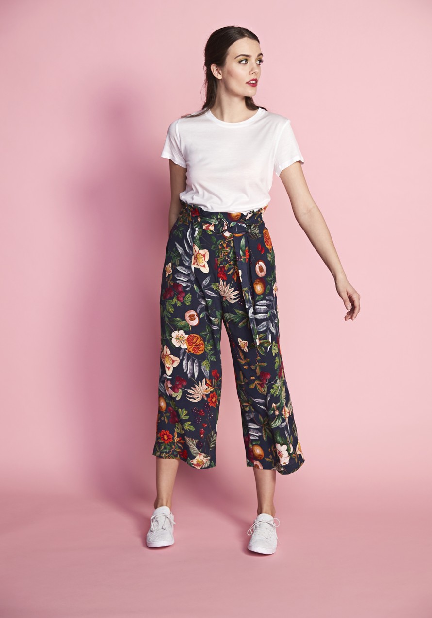 Housut, jossa lahkeet ulottuvat puolisääreen.