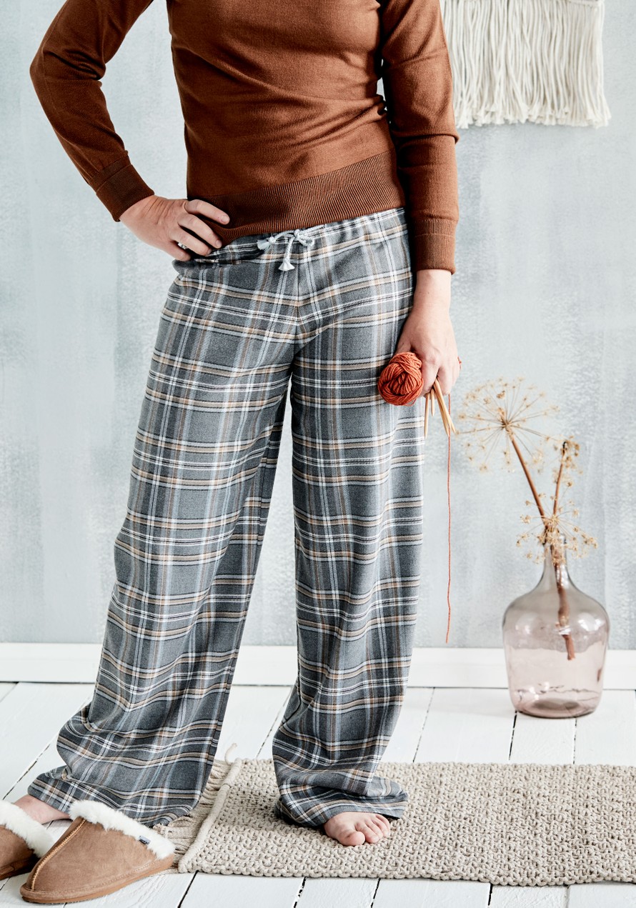 Leveät perushousut kotihousuiksi tai pyjamapöksyiksi.