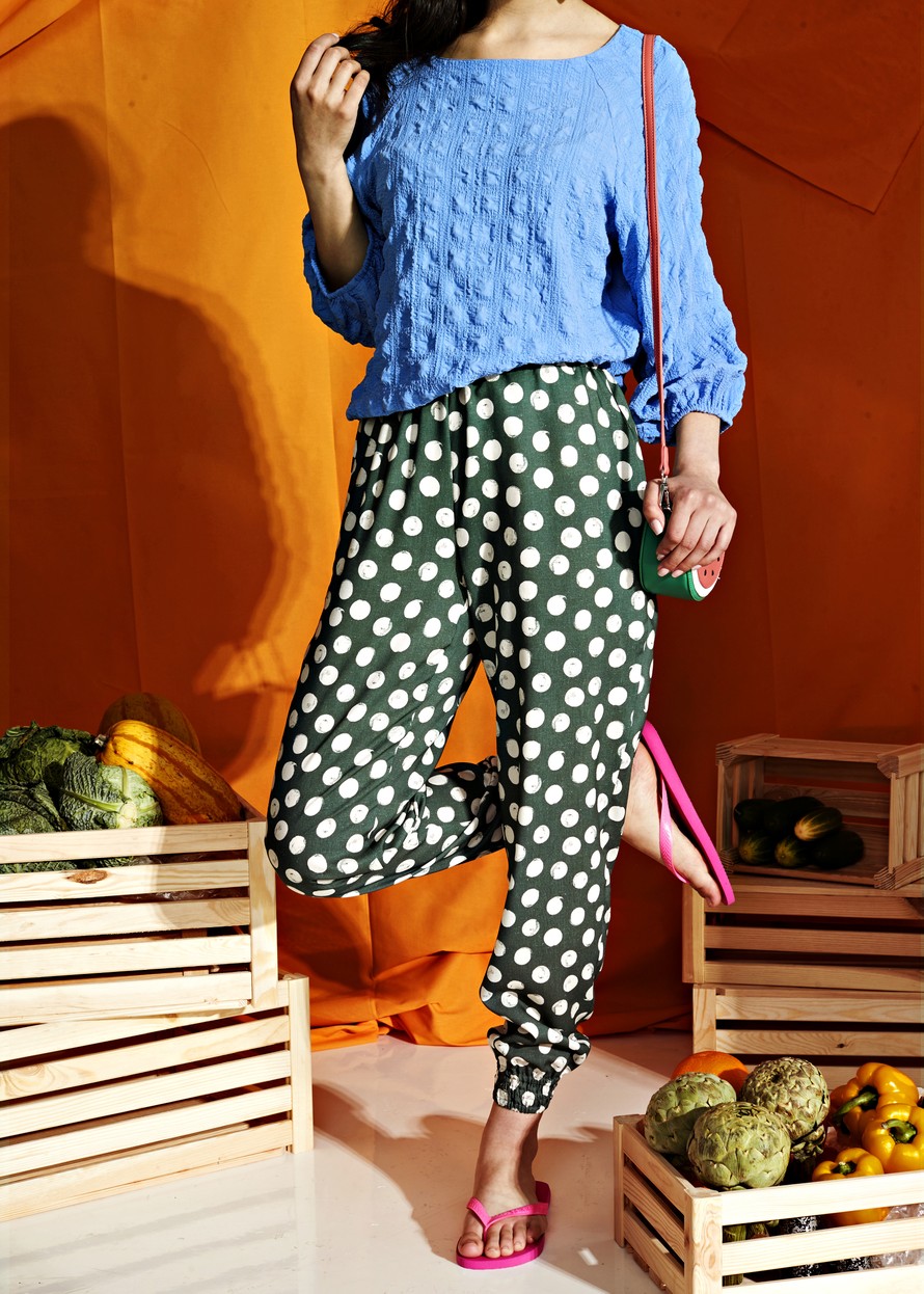Porkkanalinjaiset housut.