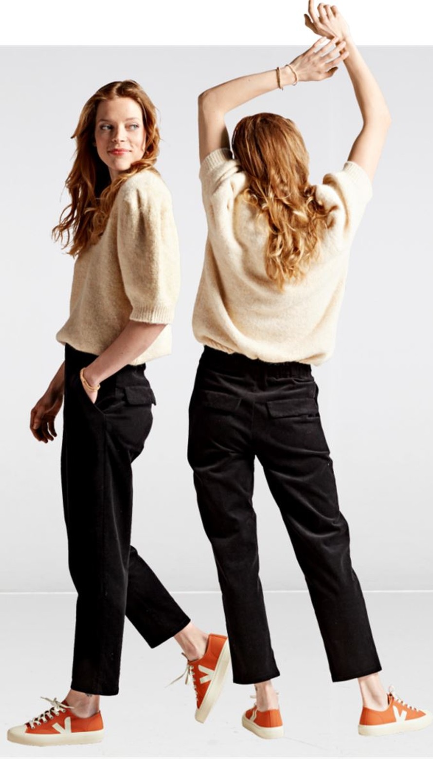 Vyötäröltä napakat, lantiolta ja reisistä mukavan väljät housut.