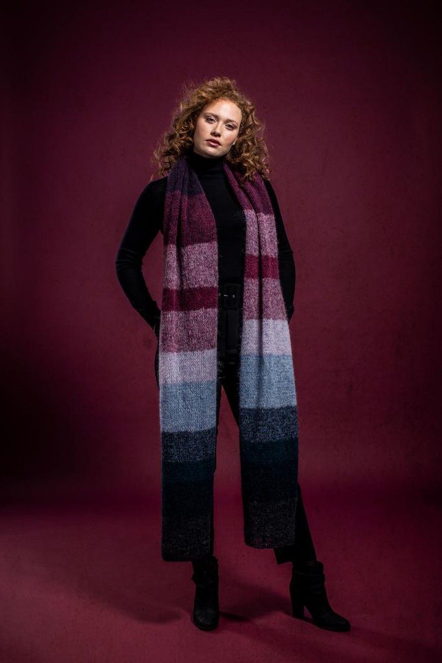 Huivi neulotaan kahdella eri puikkokoolla.