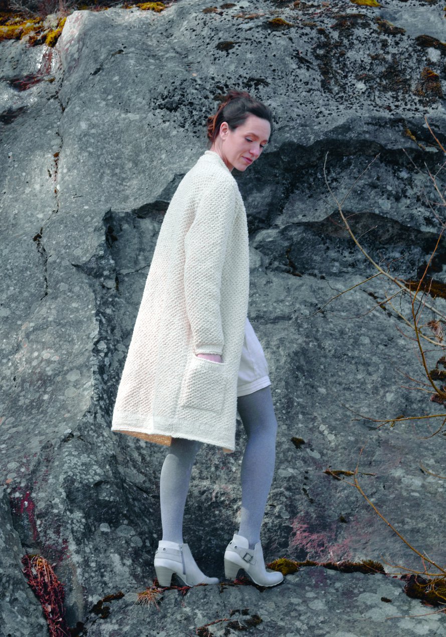 Suuri Käsityö 3/2018 s. 64Silkkilagasta neulottu klassinen takki.