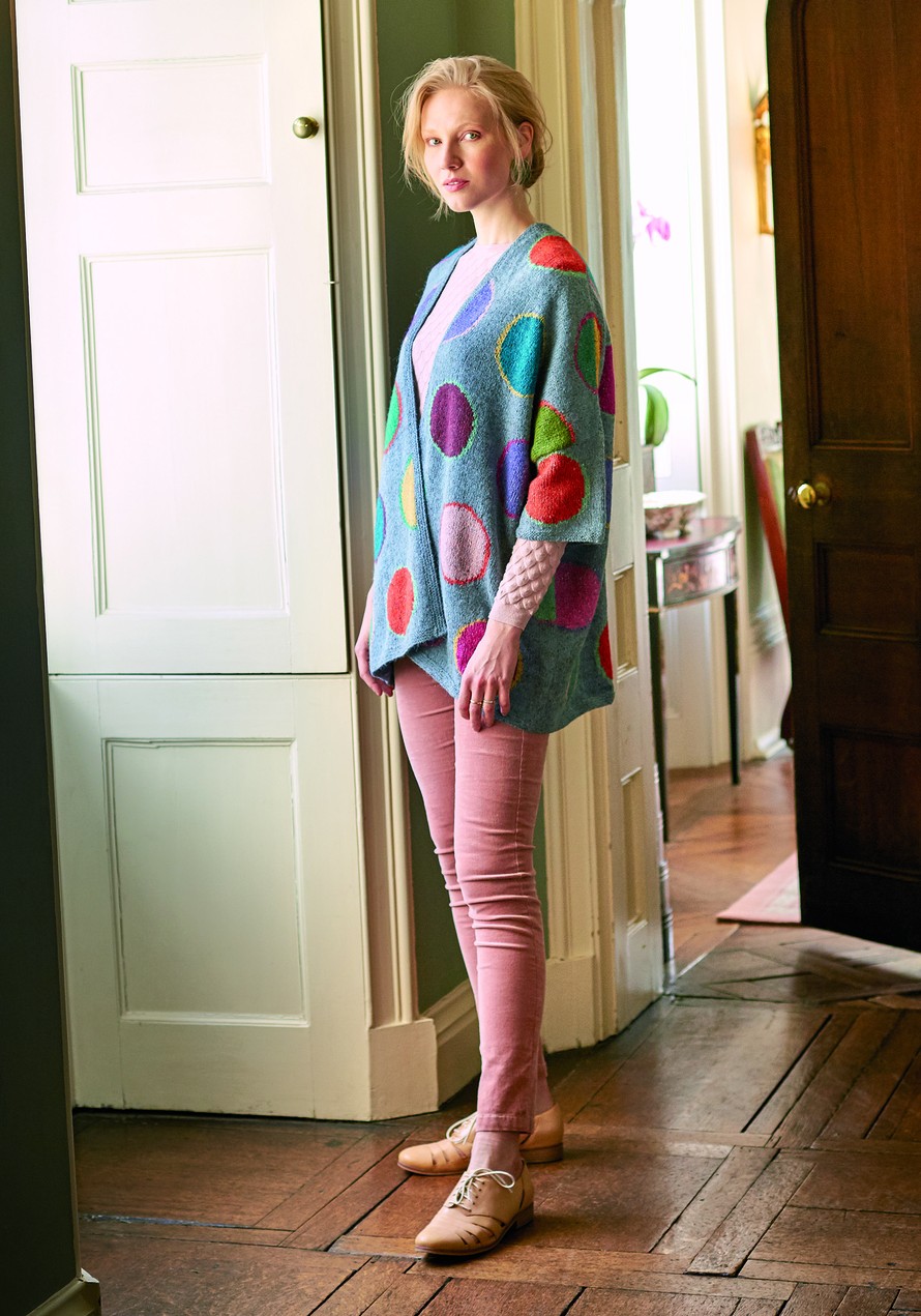 Värikäs halo-jakku.