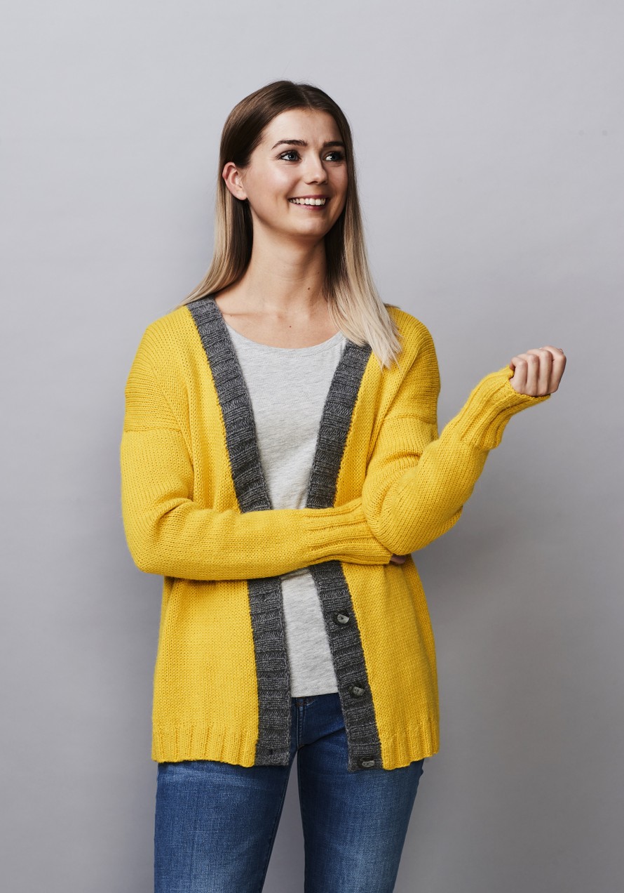 Moderni neulejakku nappilistalla.