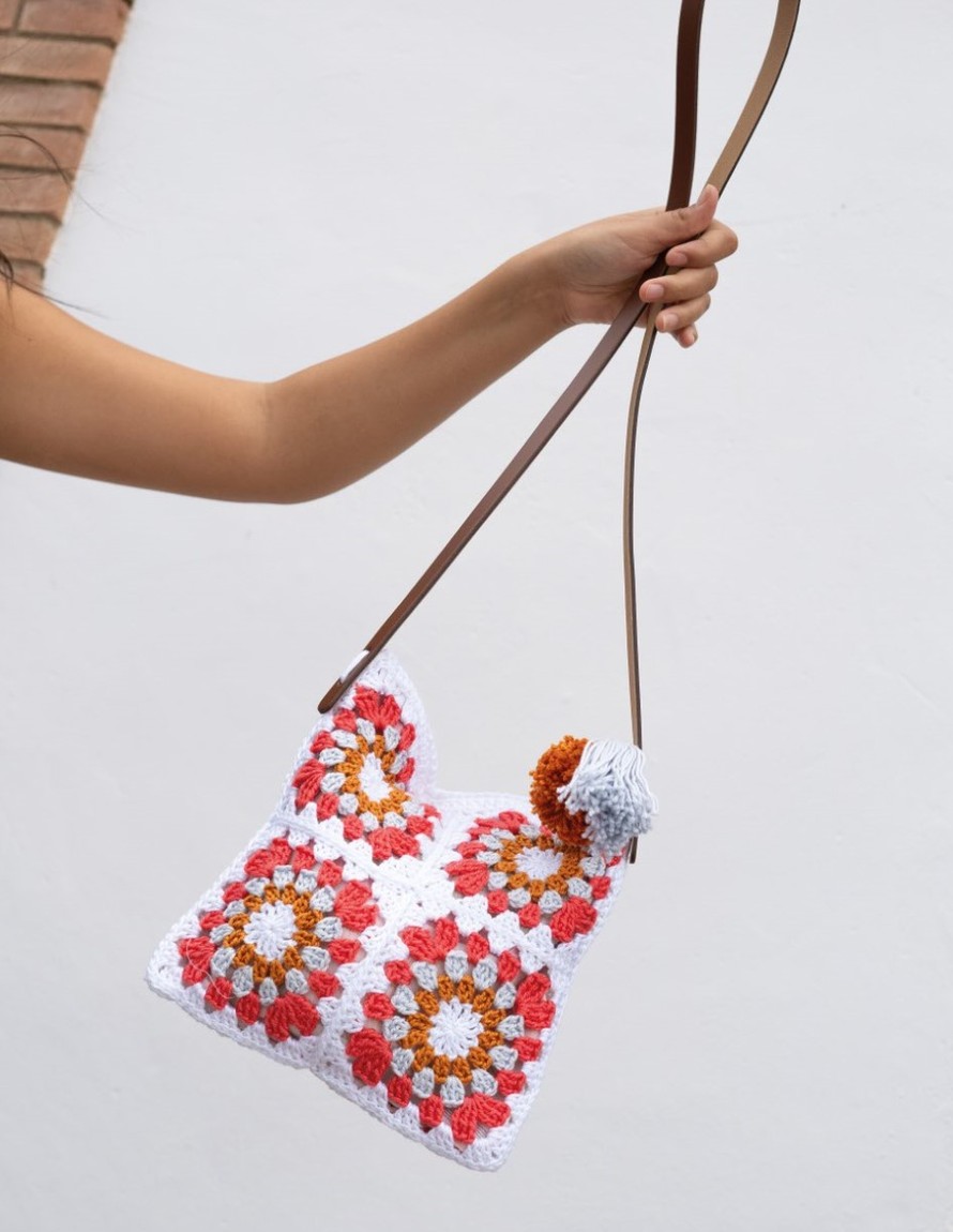 Virkattu, söpö kassi, koko 24 x 24 cm.