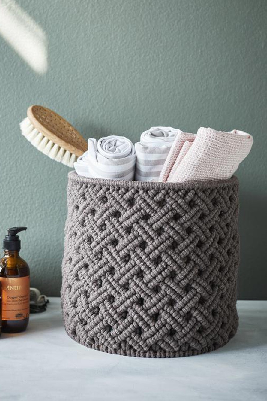 Kohosolmuilla koristeltu makrameekori.
