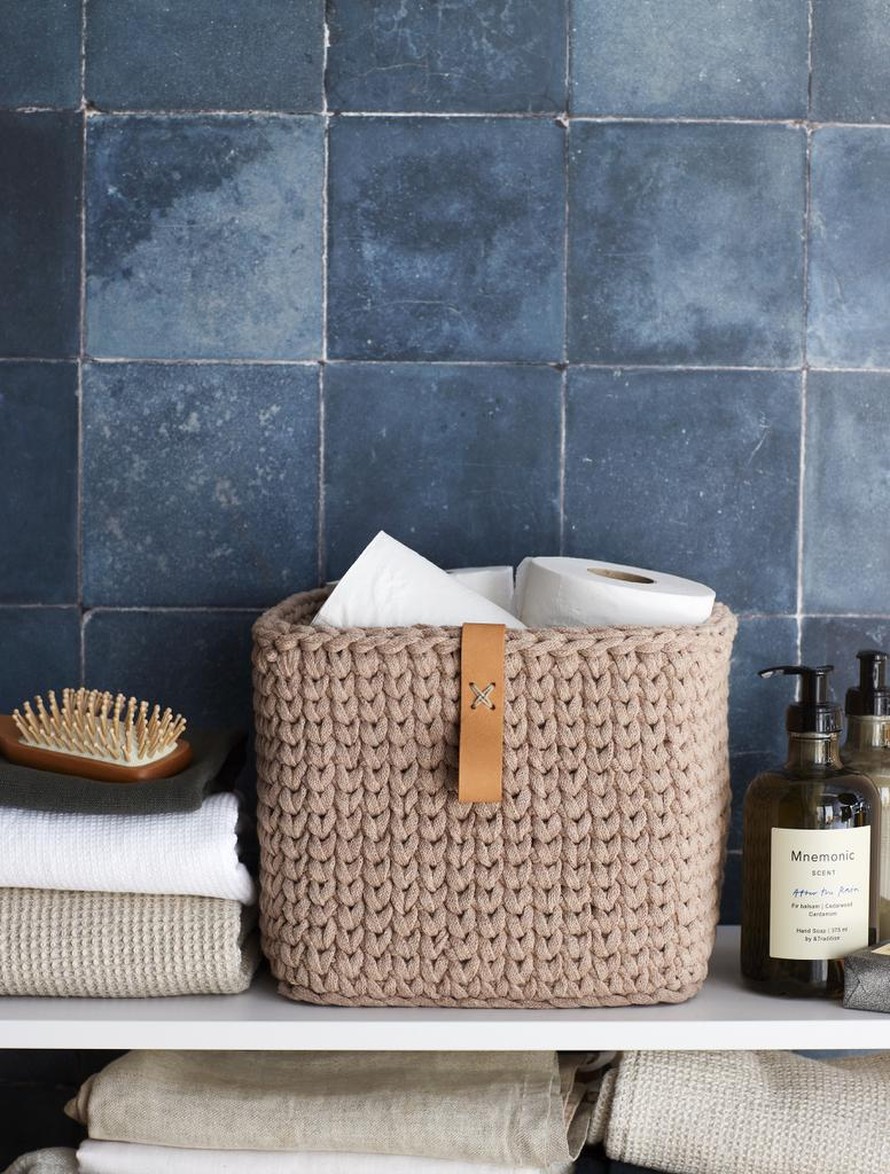 Napakka, kuutionmuotoinen virkattu kori.